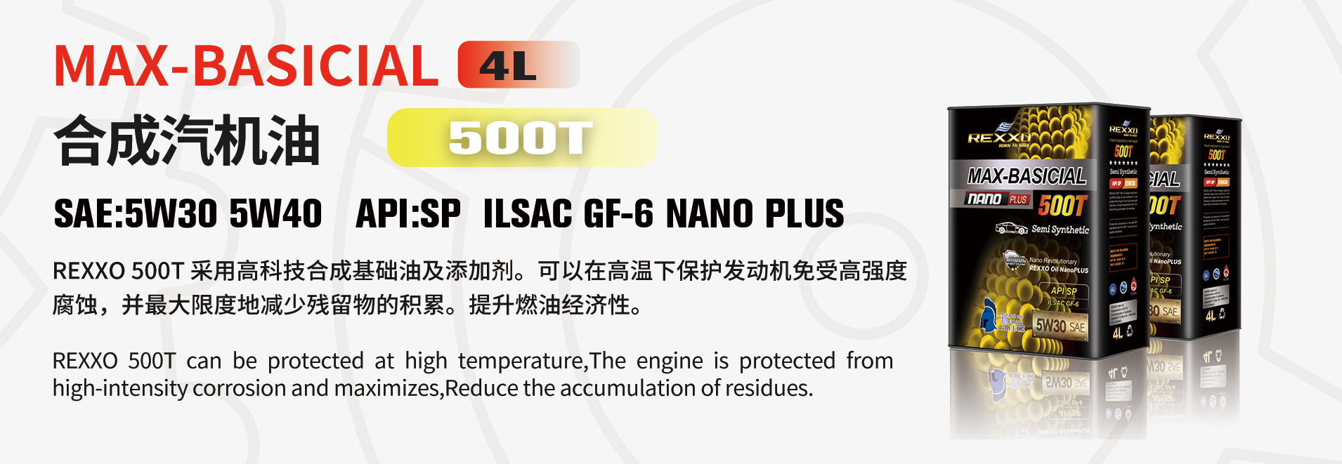 REXXO 500T 5W30,可以在高溫下保護發動機免受**度腐蝕,并較大限度地減少殘留物的積累.